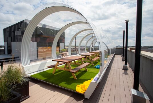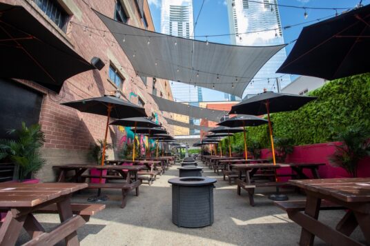 Rows of picnic tables, colorful graffiti, strings of lights and firepits set in the middle make Baijiu’s side patio a must-visit, but the downtown cocktail bar next to Rogers Place hasn’t left it at that. They’re also one of the first spots in North America to make use of a Tubbo enclosure, a long tunnel that engulfs the area and keeps patrons warm. Not unlike an elongated igloo, this gerbil tube-like structure only appears in the winter months, but the patio has plenty of urban outdoor charm for visiting in the warmer seasons as well.