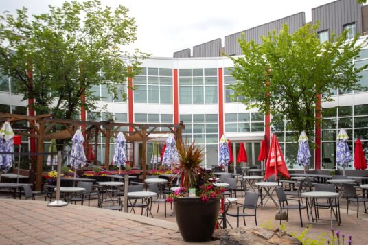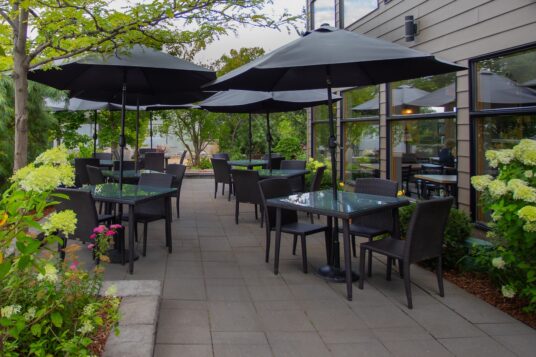 At heart, the patio experience is about relaxation, lolling at a table and enjoying a coffee or a more adult beverage. What better way to do that than in a space that also holds thousands of plants? Branches Fresh Food Experience in the Greenland Garden Centre complex is perhaps one of the most calming patios you’ll find in the greater Edmonton area, helped out by the outdoor garden centre and water feature on the side.