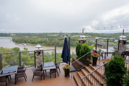 If Edmonton has one selling point, it’s the river valley, but there really aren’t a lot of patios that take advantage of those gorgeous views. One that does is the Riverside Bistro in the Courtyard by Marriott Edmonton Hotel. A half-circle on the north side of the river overlooking the Tawatinâ LRT Bridge, the bistro also boasts heated six-seater dining igloos for those looking for cozy dinner options in the non-patio seasons.